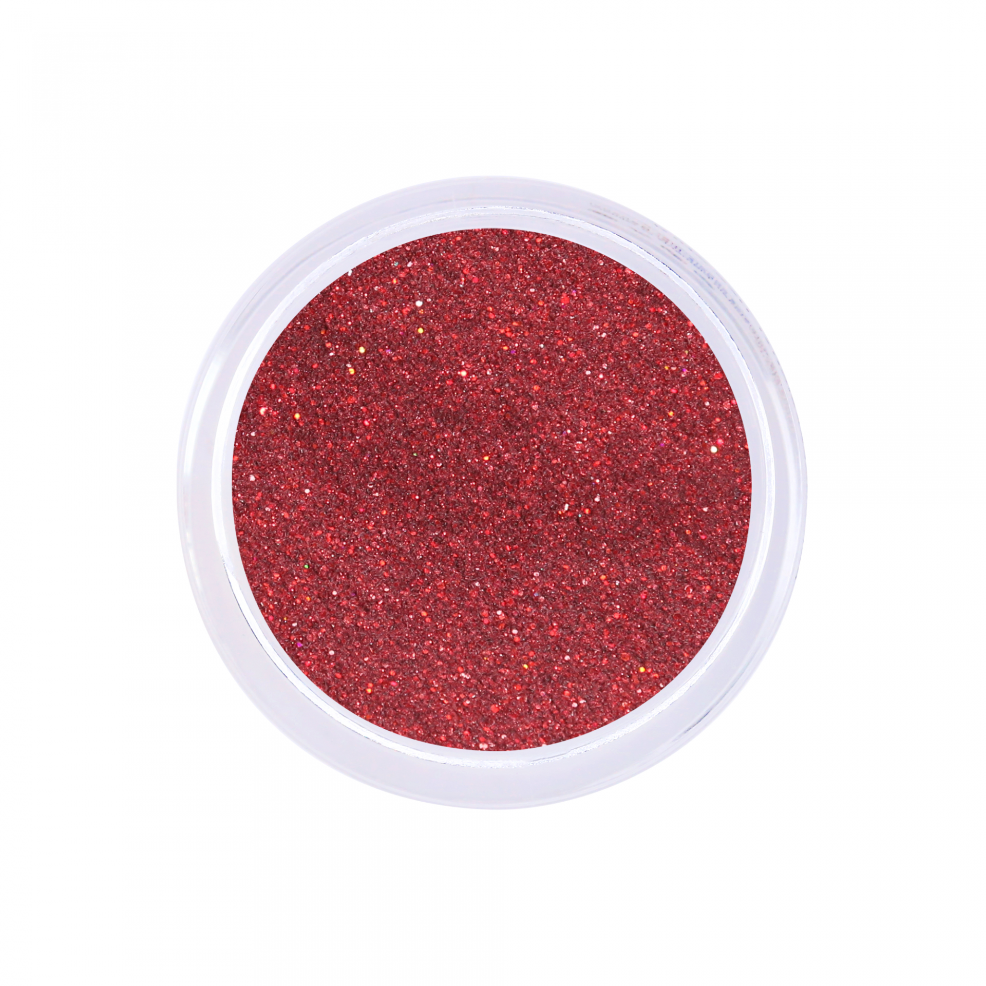 • Pote redondo transparente com glitter vermelho brilhante